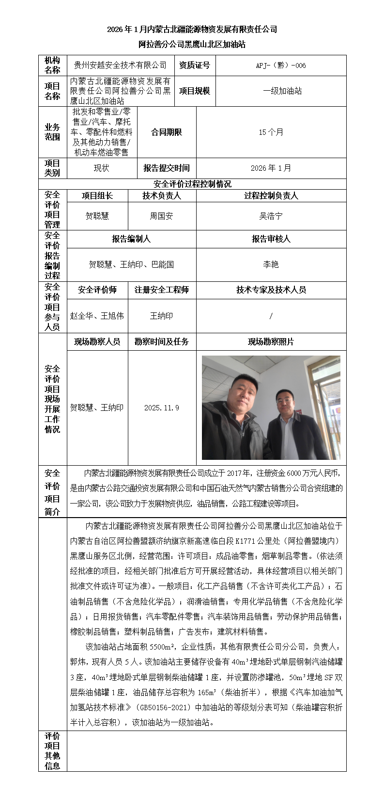 内蒙古北疆能源物资发展有限责任公司阿拉善分公司黑鹰山北区加油站