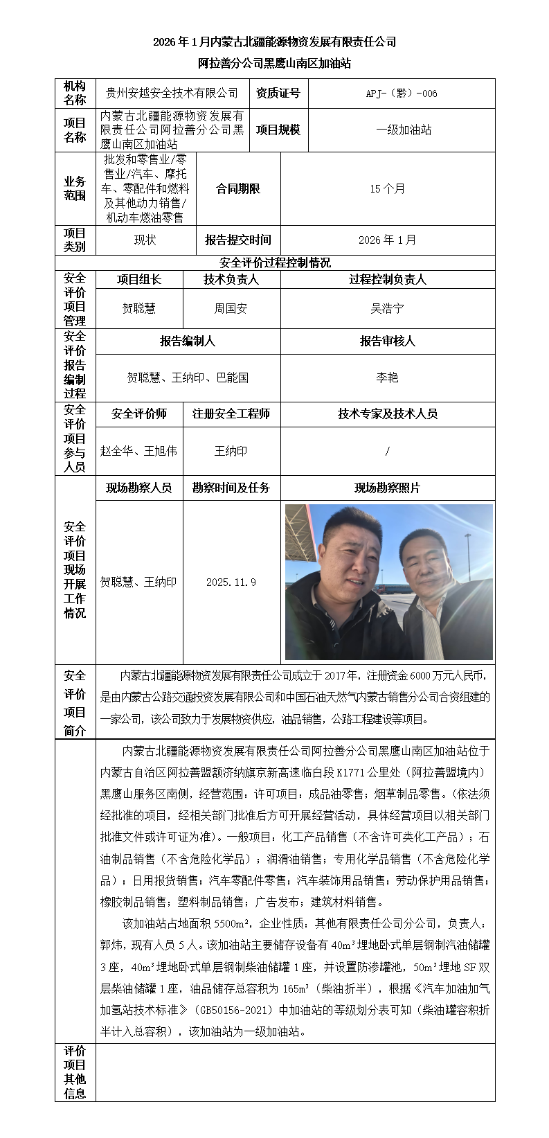 内蒙古北疆能源物资发展有限责任公司阿拉善分公司黑鹰山北区加油站